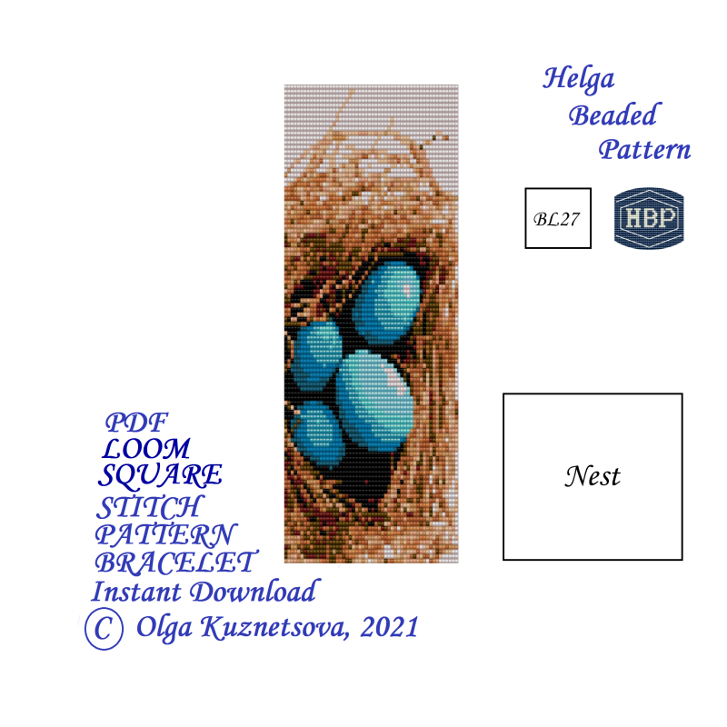 Гнездо с пасхальными яйцами можно сплести как с помощью станка, так и квадратным плетением.